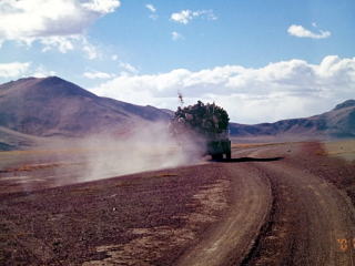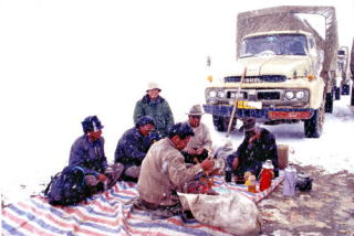 現在ゴルムドからラサは青蔵鉄道が走っている(2006年7月1日開通)が、この時はまだなかった。
